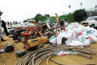 左のおじさん、機械でゴミを片づけている所・・・では勿論なくて、これも立派な廃棄物・・・一体どこにあったんですか?そんなもの。