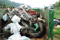 クリーン・キャンペーン in 香川の実施前、御殿浄水場から500〜600mほど下ったところに竹藪があって、ここに膨大な不法投棄物がある・・・と、このBlogの「えらいことになってます」というエントリーとしてご紹介しました。ですから、ある程度の粗大ゴミは覚悟していました。しかし、これは甘かった・・・