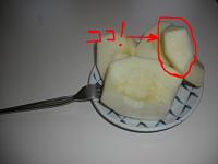 クルクルッと皮を剥いてみました。あら、ちょっと深くまでイッてますね?