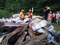 総勢220人で集めたごみは、4590Kg・・・富士山クラブの調べでは、タイヤ・自転車・テレビ・冷蔵庫・ソファーなどの他、トタン板・外壁材・煙突・・・といった明らかに業者がまとめて捨てた産業廃棄物も多く含まれていました。
