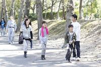 ゴミの終了は、集計に時間がかかったため閉会式には間に合いませんでしたが、全員で集まって記念撮影をして、お待ちかねのりんご狩りに出発〜つ!!