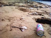 ところで、浜辺の漂着ゴミの中に、未開封のジュースを発見しました。飲む勇気ありますか?(笑)
