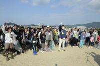 8:30から始まった受付も、9:00を過ぎるとかなり大人数となりました。もういつでも開始できる感じではありますが、なにせ今回は香川県の西の奥ということで、遠いのです。受付した状況では定員の350名の内、高松からが約半分、岡山からもご応募がありましたし、集合がかなりバラけております・・・もう少しお待ちくださいね。