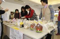 当日は「ランチマップ」もお配りし、昼食をとってからお越しいただいても結構ですよ〜・・・とご案内しておりましたが、やはり「マルシェ」の鉄則は「いいものは早い者勝ち」ということでしょうか。ものの30分もしないうちにご覧の混雑ぶり・・・イベント通貨「みとよん」を大人は1000みとよん、子供は500みとよんを受け取って、さぁ「買うぞ」!