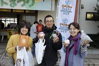 きれいになった砂浜で記念撮影を行い、車で15分ほど離れた「インパルみの」で行われるみとよマルシェに移動です。パーソナリティと記念撮影する人もいて名残惜しい感じです。