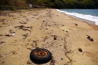 昨年の父母ケ浜でも、クリーン・キャンペーンが終わった後、地元の皆さんに御礼周りに行った時浜を見たら車のバンパーが落ちていてビックリしましたが、なぜか漂着ゴミには車のパーツが定番のようです。