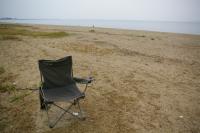 浜辺に置き去られたレジャーチェアがちょっと寂しさを演出しておりますね。