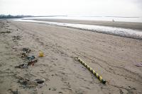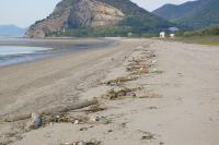 一昨年の「父母ケ浜」ど同様に遠浅の有明浜・・・引き潮になると広大な「砂場」が顔を出すのは変わりません。全体を見渡すと「あれ・・・ゴミ、少ないかな?」と思います。