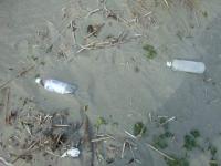 砂浜の表面に顔を出しているこうしたゴミもあれば、