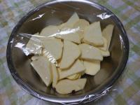 5ミリくらいの薄さに切って水に1分ほどさらします。