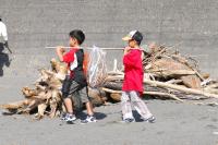 力を合わせて大きな流木を運んでいる姿が印象的でした!!