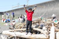 流木を使ってごみを運ぶという、ナイスなアイデアです。