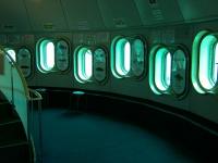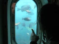 階段を下りたところにある海中展望室には、24個の海中窓があります。