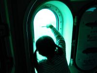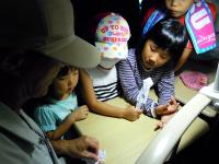 窓をのぞきこむ皆さん。