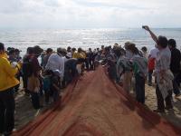 既に地元スタッフが前日から仕掛けていてくれた網に魚が入っていてくれれば