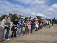 全員で砂地に座り込んで清掃開始です。