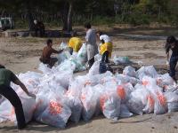 海岸にはタバコやビニールをはじめ、打ち寄せられたペットボトルや