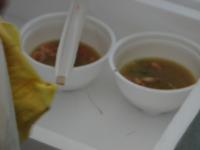 今回は、地引き網の後に行われた、甘エビのふるまい鍋、ジャンケン大会、