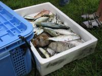 これらの魚+このイセエビがジャンケン大会の景品。いよっ、太っ腹!