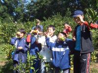 終了時間に時間差を付け、グループごとにバスでみかん狩り会場に!