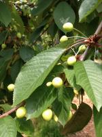 先日さくらんぼ狩りの会場となる山本農園さんに行って来ました。そうしたら桜の木の先にありましたありました、まだまだ小さいさくらんぼの子供?のようは実が。