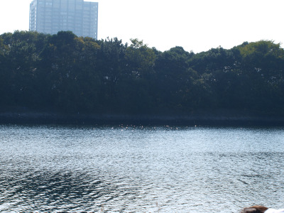 清掃場所に移動すると、対岸は涼しげな森のような場所。