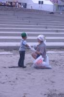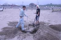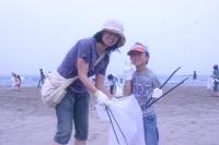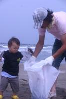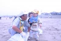 広大な砂浜で、パンパンのゴミ袋を持って大移動