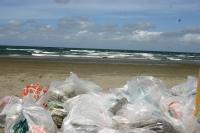 集まったゴミとキレイになった砂浜との対比、イイですね!