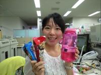 会社にはお気に入りの1リットルのピンクのボトルで持ってきていますよ。