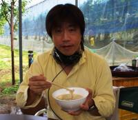 というわけで・・・・ぶどう園の取材中に、たまたま庄内風のイモ煮をごちそうになった岩崎敬でした。
