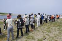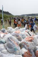 参加者全員の列がゴミを繋いでいきます!