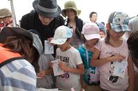 ブルーベリー狩りへの参加証を首にかけて、ただいま受付中っ!「早くゴミ拾いた〜い!」「ブルーベリー狩り楽しみっ!」なんていう声も聞こえてきましたよ!^^