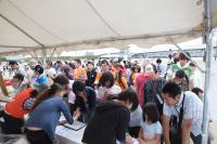 受付開始です!!!!続々と会場に駆けつける参加者のみなさん!!なんとも心強いッ!!!帽子にサングラス、バスタオル…と気合が十二分に伝わってきます★