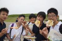清掃活動で疲れたあとの、焼き立てのイカとおにぎりは格別!!