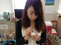 顔を書く大屋さん。