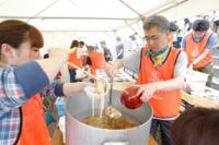 清掃活動を頑張った後は、美味しいちゃんこ鍋とおにぎり。