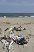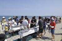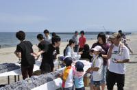 ワタクシ含めスタッフは、準備のために朝6時入りしました。新潟地方は、梅雨入りしたばかりとあって、天候が心配でしたが、まるで真夏のようなお天気でした。会場に着いてすぐさま海岸を見渡すと・・・ゴミがたくさんありました。