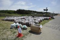 参加者の皆さんと一緒に拾ったゴミ1リットルを10円の義援金として換算し、