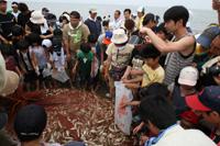 どんな魚が捕れるのでしょうか?みなさん期待を膨らませながら、大人も子供も一生懸命網を引きます。