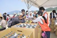 おにぎりとお茶、そしてデザートのプラムを皆さんに配布しました。
