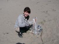 子供たちも焼けてもろくなったビニールを集めるのに苦戦していました。
