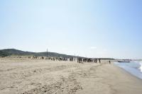 地引網は、海岸から2本の綱を引きながら、網を引き寄せていく漁法で、