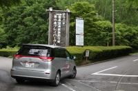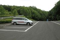 4.パーク内を約1.0km進むと写真の駐車場に着きます。こちらで集合場所行きのワンボックスカーにお乗りください。