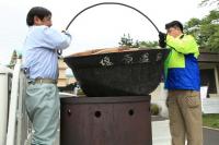 エンタメ会場周辺の下草刈り これが大根鍋用の巨大鍋