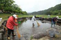 今日は朝から、開催に多大なるご協力をいただいている塩原地区車座談議のメンバーの方と、つかみどり池の清掃、大根鍋用の巨大な鍋の搬入などの準備作業を行いました。