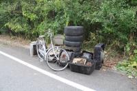 冷蔵庫、自転車、タイヤ、トラクターの部品などゴミ袋に入らないようような粗大ごみも目立ちました。