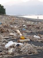 先日(10/16)、事務局スタッフが清掃会場となっている三保・真崎海岸の様子をチェックしたところ、やはり台風の通過によってたくさんのゴミが打ちあがっていました。