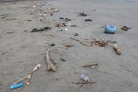 御前崎マリンパークは多くのゴミが打ち寄せられています。プラスチック製品が多いですね。