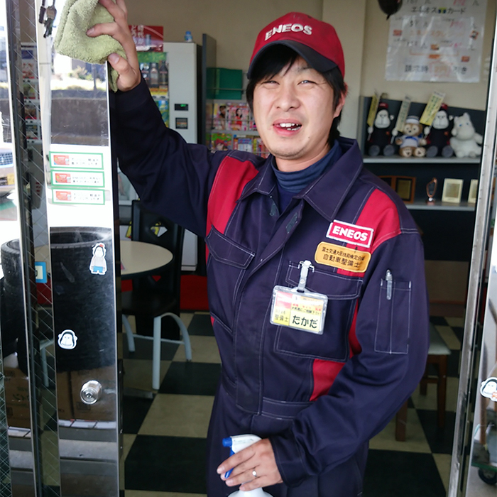 木村石油(株) ENEOS 金閣寺SSの西村真介です! 私は、バドミントンの桃田賢斗選手の大ファンです! 得意技のヘアピンで、東京オリンピック、金メダル獲得に向けて頑張って下さい!応援しています!