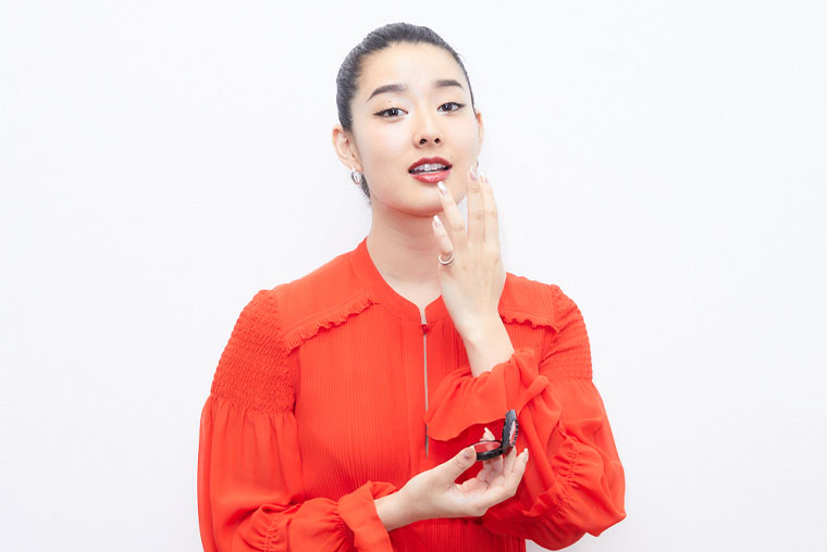 指で少しとって、リップやチークにぽんぽんと色をのせてなじませるだけで、リップはハーフマット、チークはナチュラルなツヤ感が出て、トレンドの仕上がりになるよ! - 広海